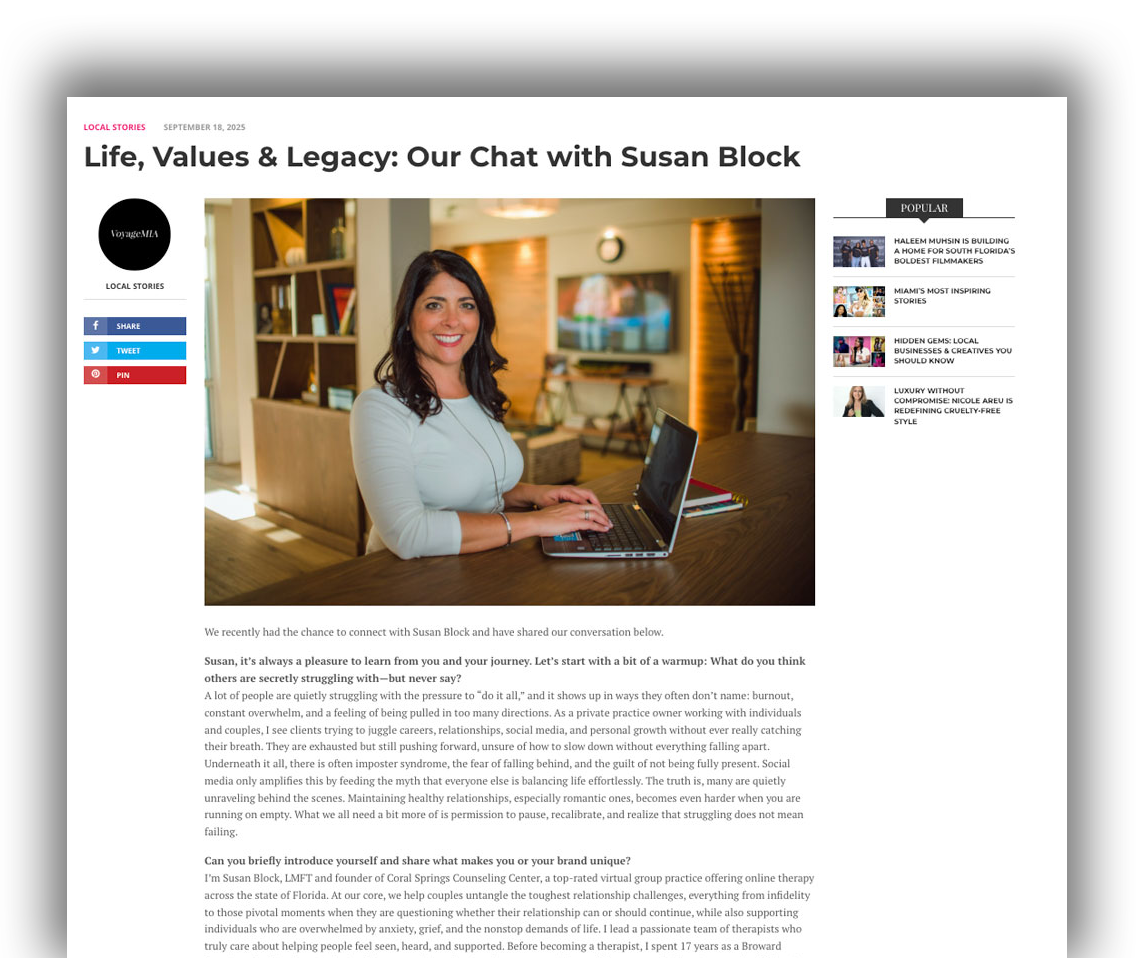 Hi, I’m Susan Block, Licensed Marriage and Family Therapist and Private Practice Coach.